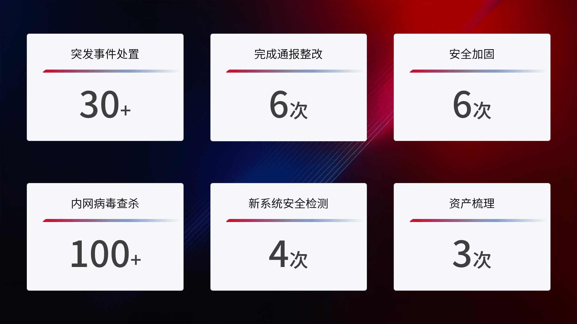 网络安全加固与风险管理:通过技术加固手段,,如加强区域隔离,,,缩减攻击内网横向移动的范围;优化现有网络安全管理制度,,降低网络威胁暴露面,,,减少被黑客攻击的可能性。。